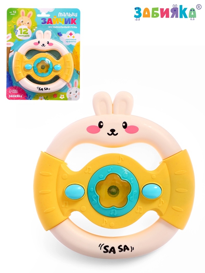 Музыкальный руль «Малыш зайчик», звуковые и световые эффекты, жёлтый