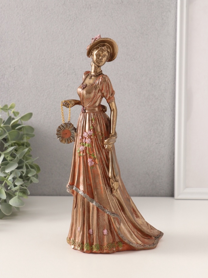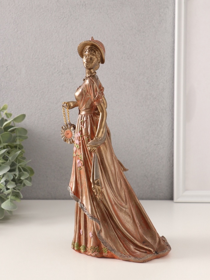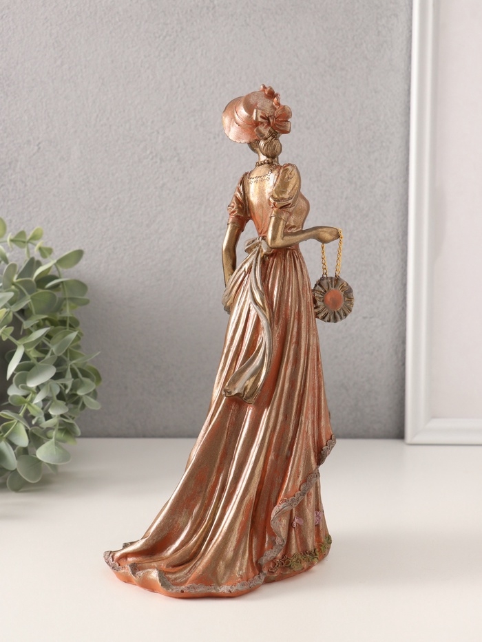 Сувенир полистоун "Дама в платье со шлейфом, с сумочкой, в шляпке" 14х11х26 см