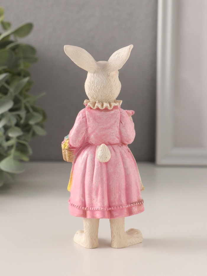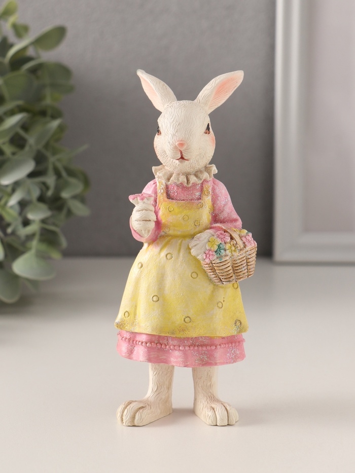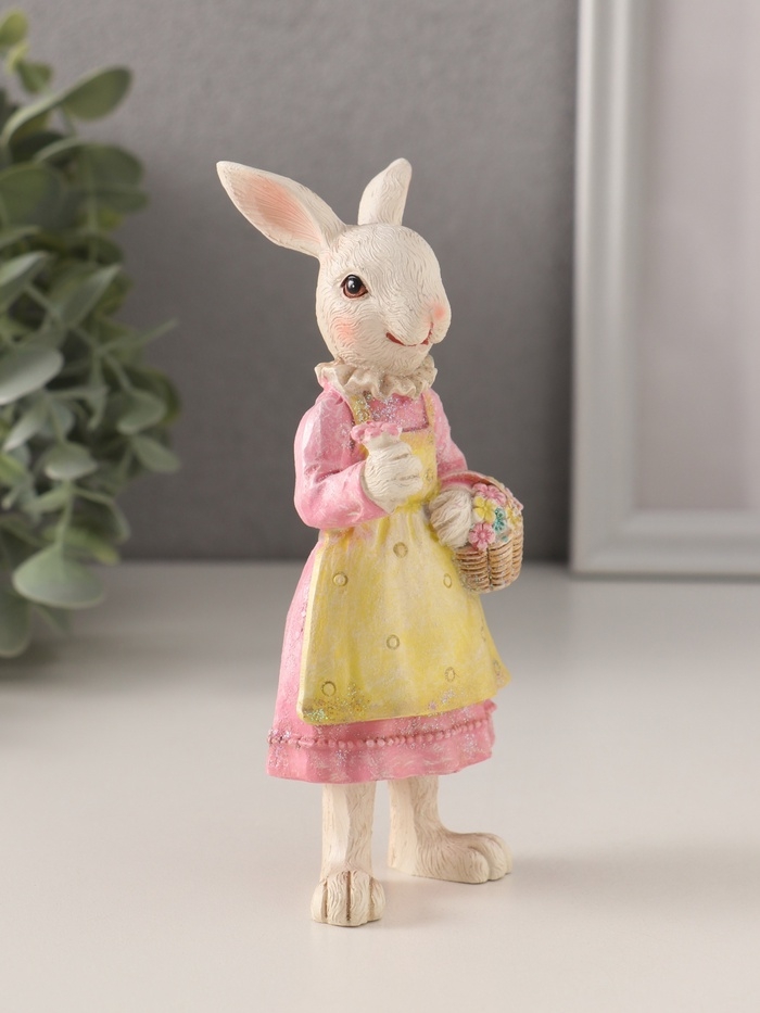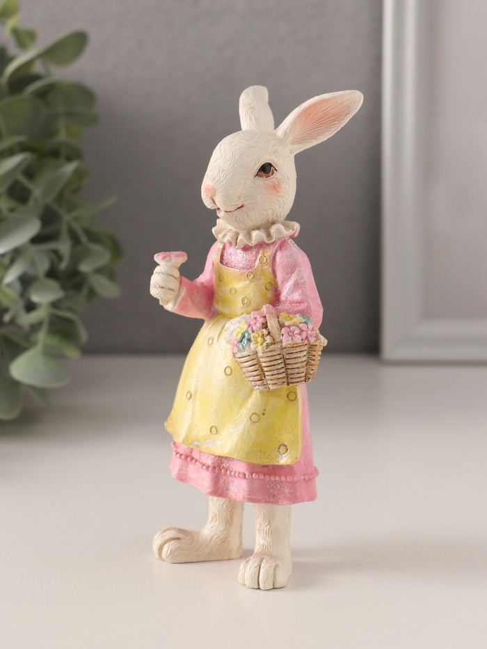 Сувенир полистоун "Зайка в платье с передником, с корзиной цветов" 5,5х5х14,5 см