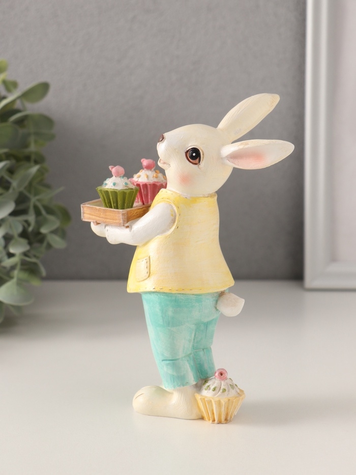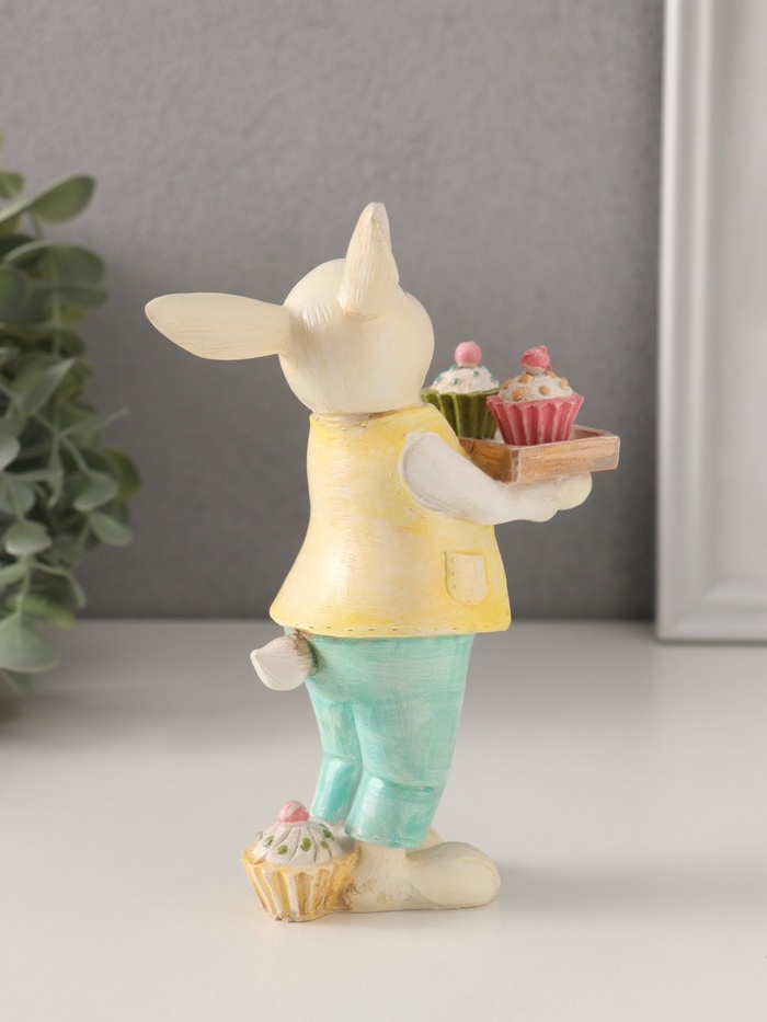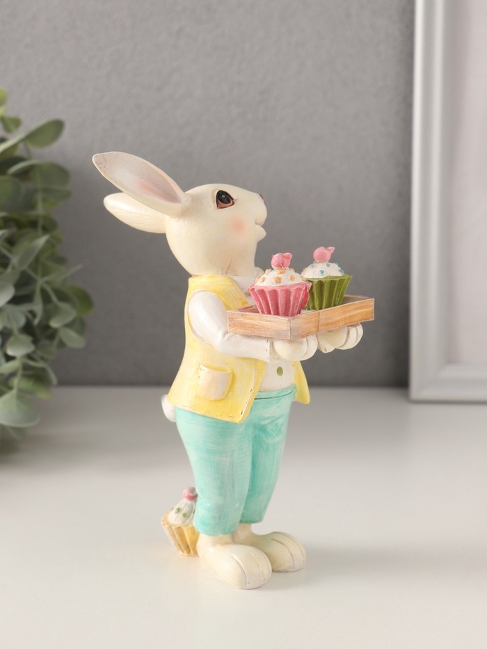 Сувенир полистоун "Нарядный кролик с кексами на подносе" 11х6х16 см
