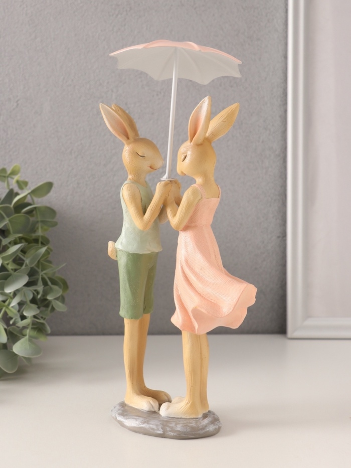 Сувенир полистоун "Романтика. Кролики под зонтом" 12х9,5х25,5 см