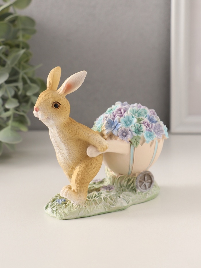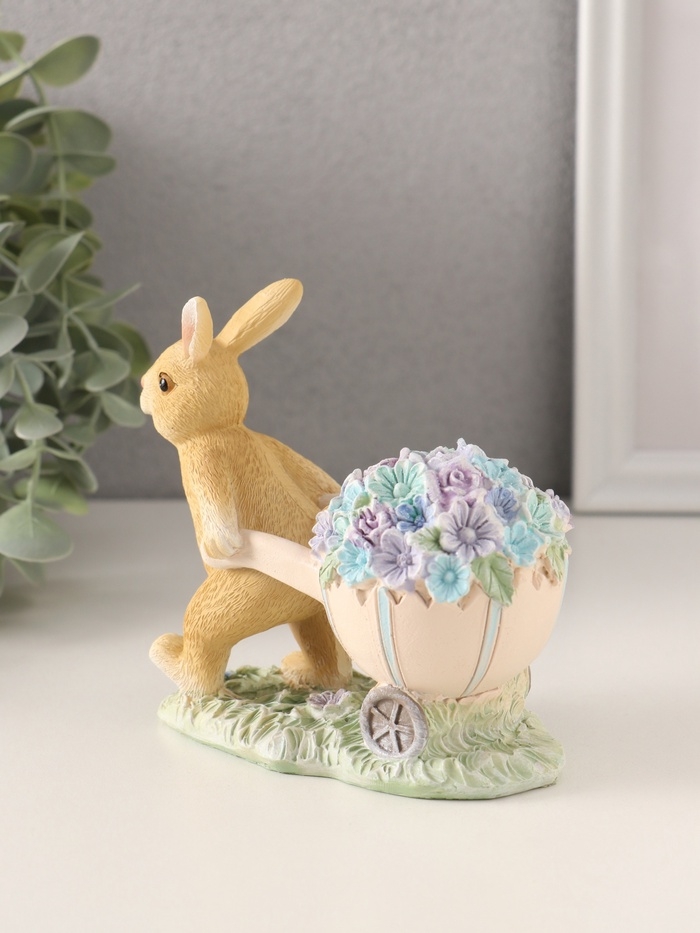 Сувенир полистоун "Зайчик с тележкой роз и незабудок" 11х6х10,5 см