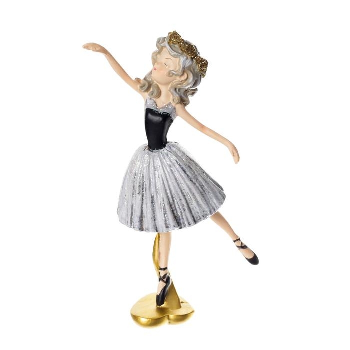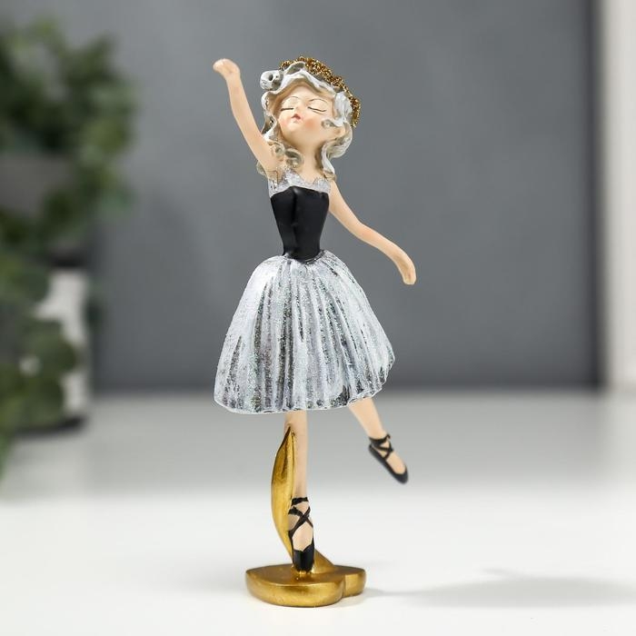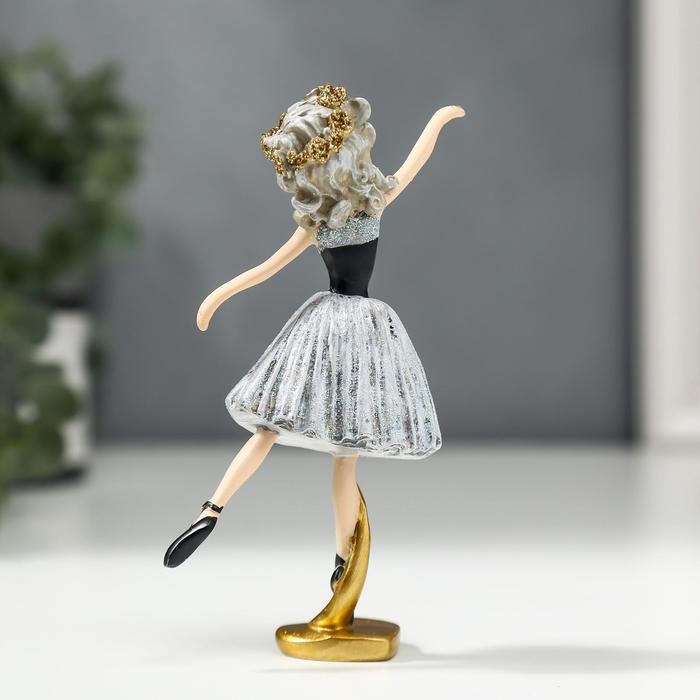Сувенир полистоун "Балерина с кудрями, в серо-чёрном платье и чёрных пуантах" 13х3,5х6,5 см