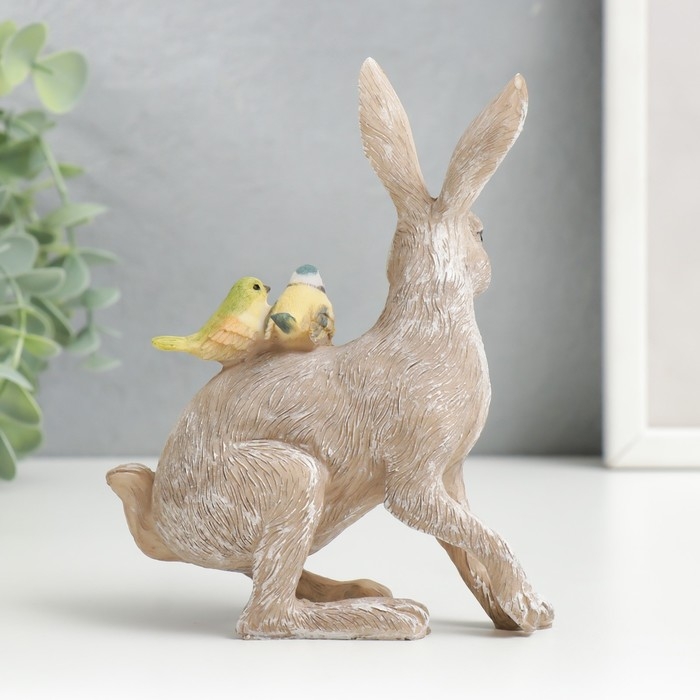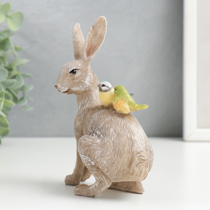 Сувенир полистоун "Кролик с синичками на спине" 14х5,5х11,5 см