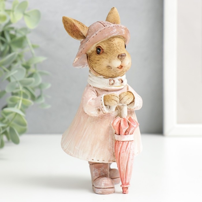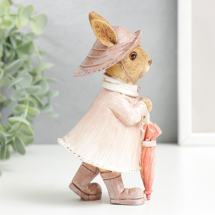 Сувенир полистоун "Зайка в шляпке и дождевике с зонтом" 14,5х6,5х8 см