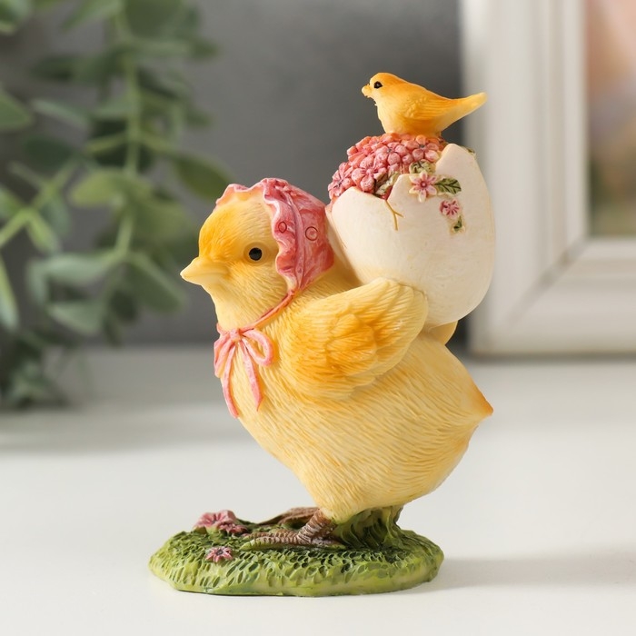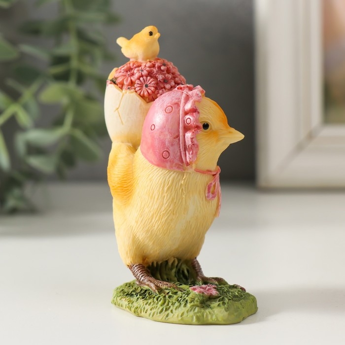 Сувенир полистоун "Курочка в чепчике, несет цыпленка в скорлупе с цветами" 6,5х4х9 см