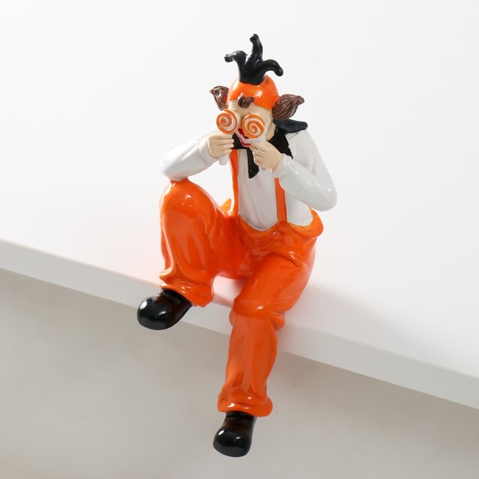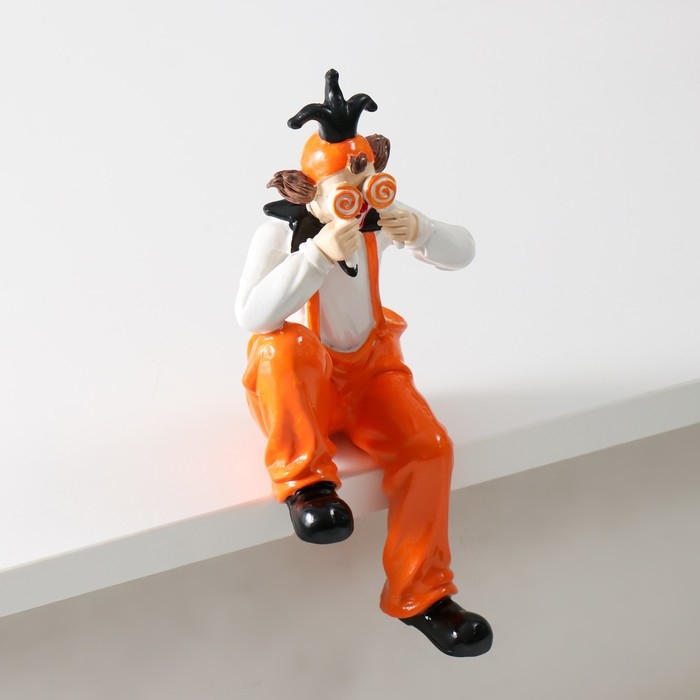 Сувенир полистоун "Клоун с леденцами, сидит" бело-оранжевый 10х9,5х20 см