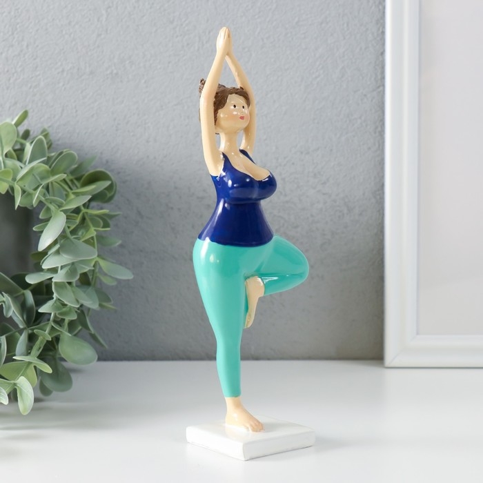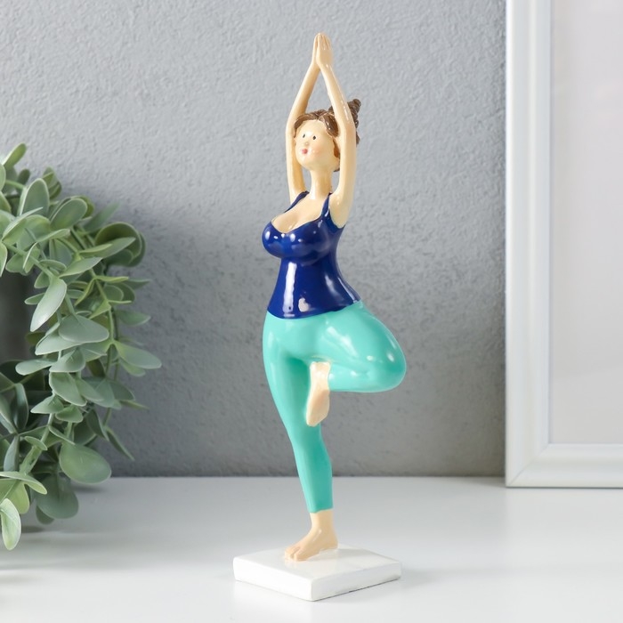 Сувенир полистоун "Пышечка - йога поза дерева" сине-бирюзовая 7х4,5х20,5 см