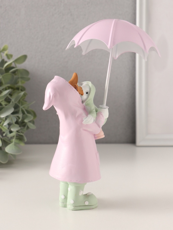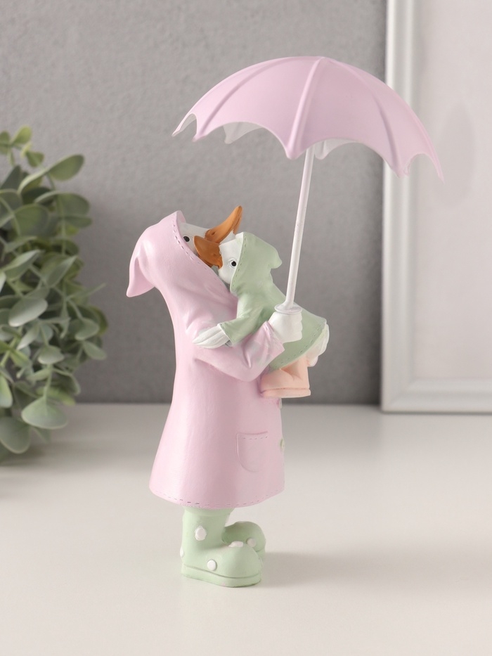 Сувенир полистоун "Утка с утёнком в дождевиках под зонтом" сиренево-зелёный 8х6,5х14,5/19 см 10583