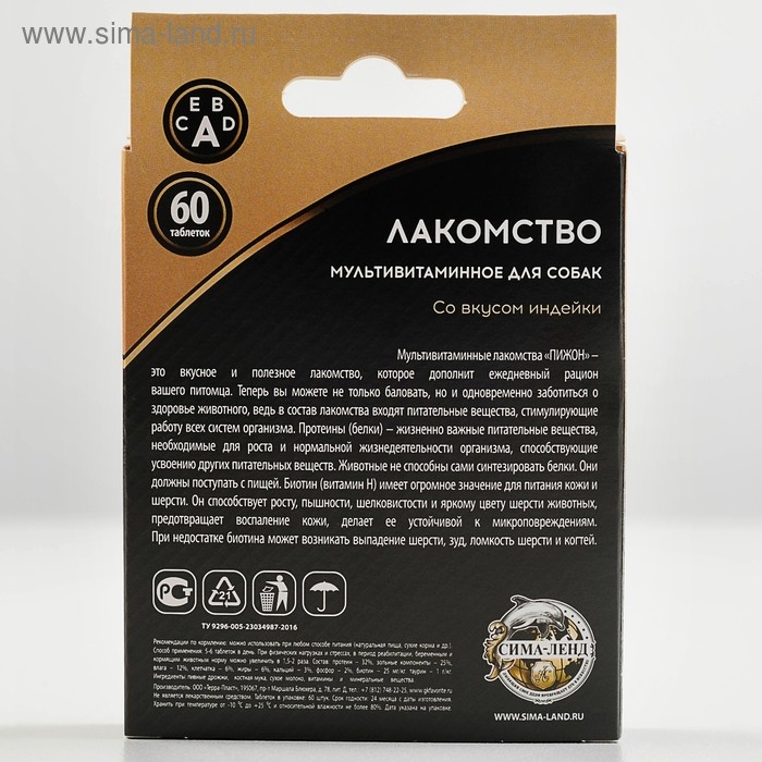 Лакомство для собак "Пижон. Здоровье кожи и шерсти" со вкусом индейки, 60 таб