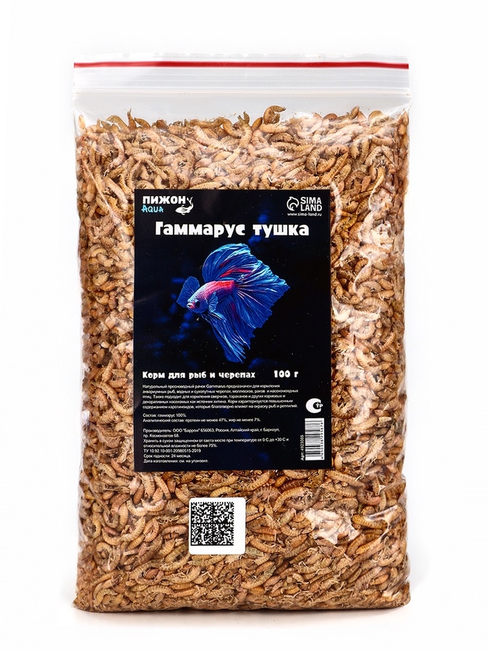 Корм для рыб и черепах "Пижон" гаммарус тушка, 100 г