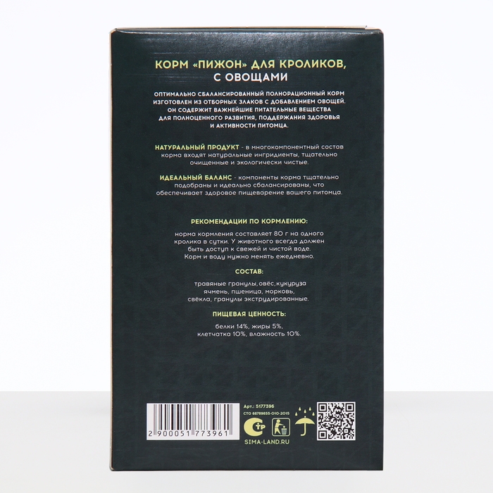 РЕКОМЕНДАЦИИ ПО КОРМЛЕНИЮ: норма кормления составляет 80 г на одного кролика в сутки. У животного всегда должен быть доступ к свежей и чистой воде.