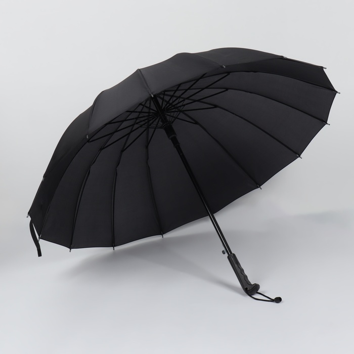 Зонт - трость полуавтоматический «Однотонный», 16 спиц, R = 48/55 см, D = 110 см, цвет чёрный