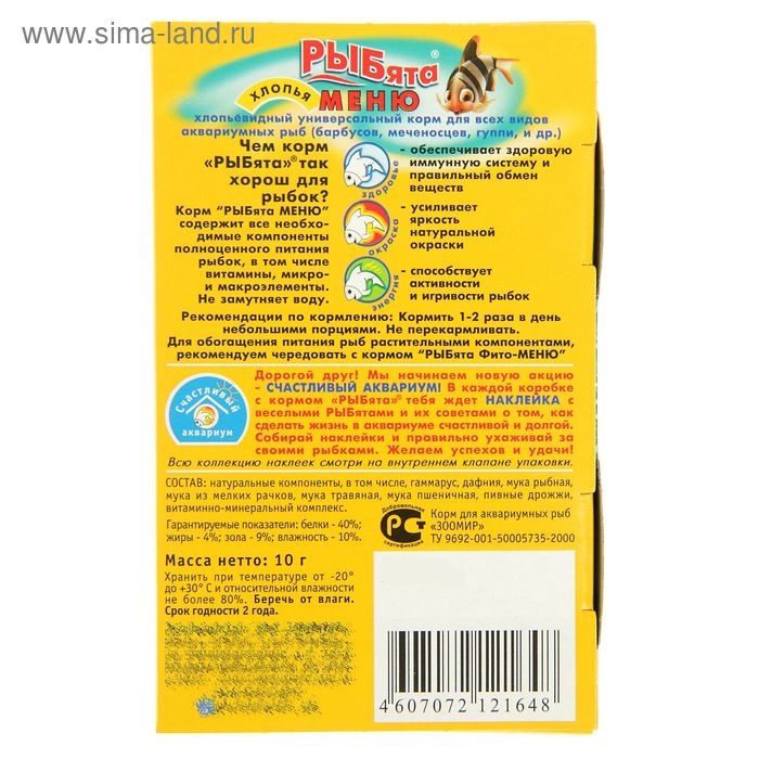 Корм универсальный "РЫБята МЕНЮ" (+ сюрприз) для рыб, хлопья, 10 г