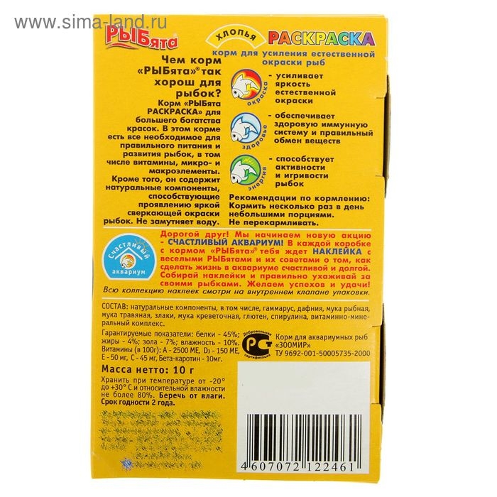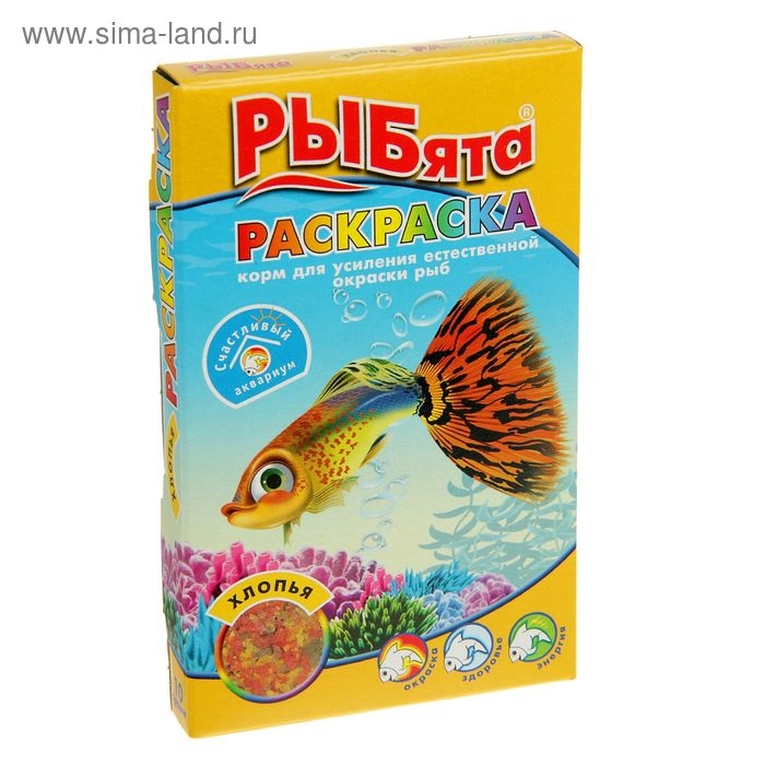 Корм "РЫБята РАСКРАСКА" (+ сюрприз) для усиления окраски рыб, хлопья, 10 г