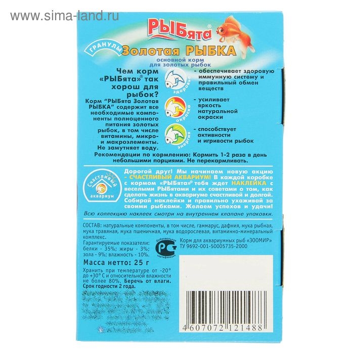 Корм "РЫБята Золотая РЫБКА" (+ сюрприз) для золотых рыб, гранулы, 25 г