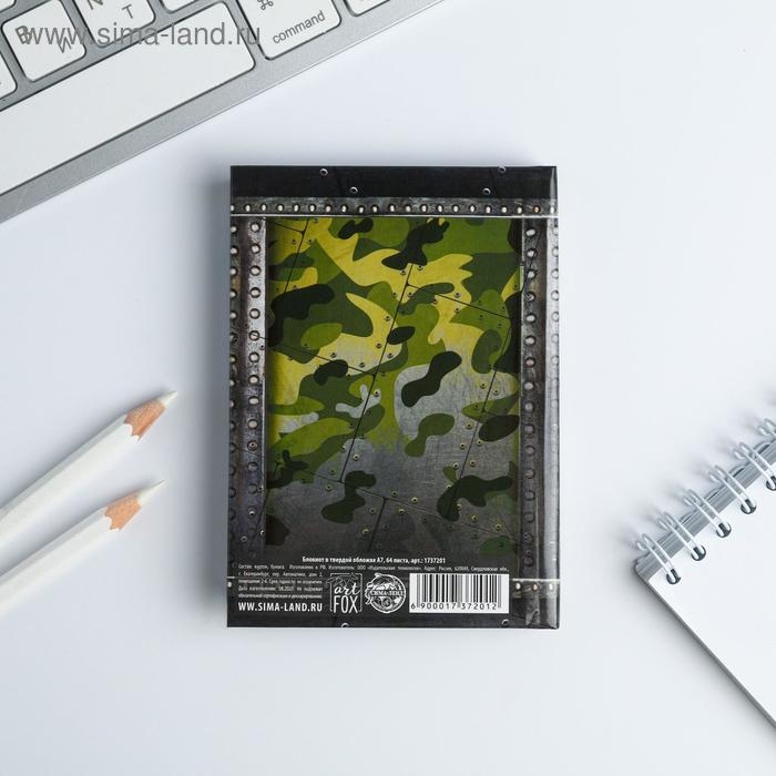 Блокнот А7, 64 листа в твердой обложке «С 23 февраля»