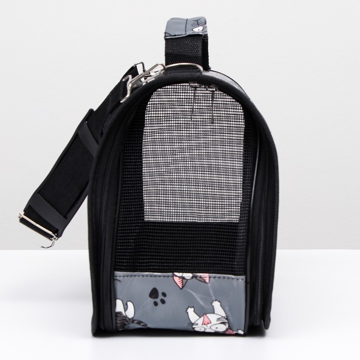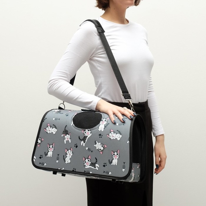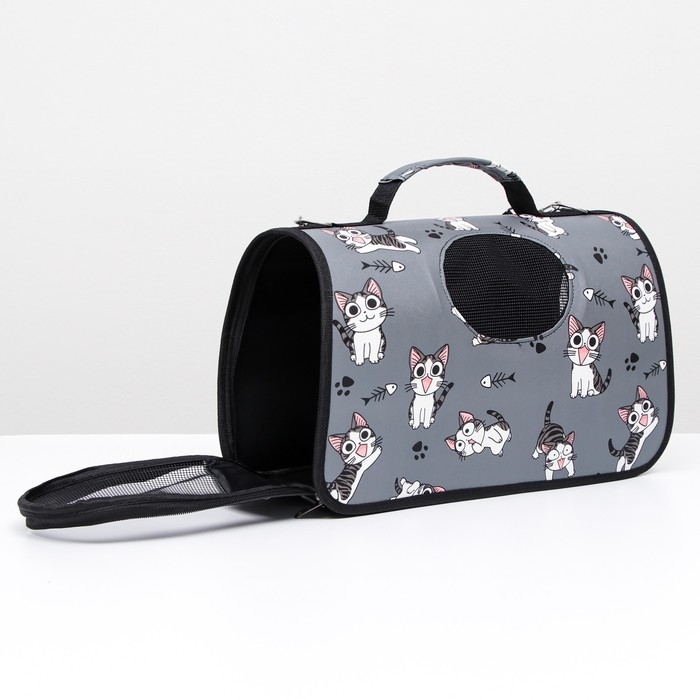Сумка-переноска каркасная "Играющие котики", размер S, 37,5 х 17 х 22 см, серая