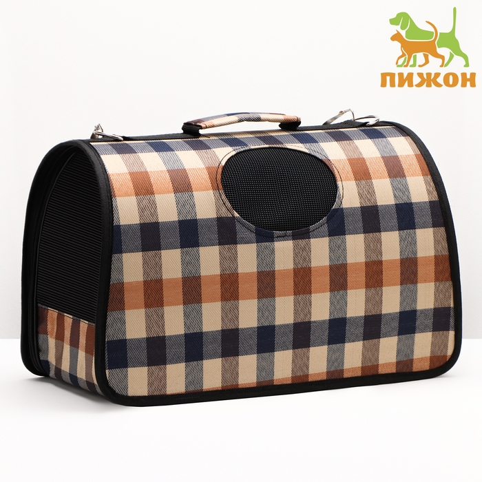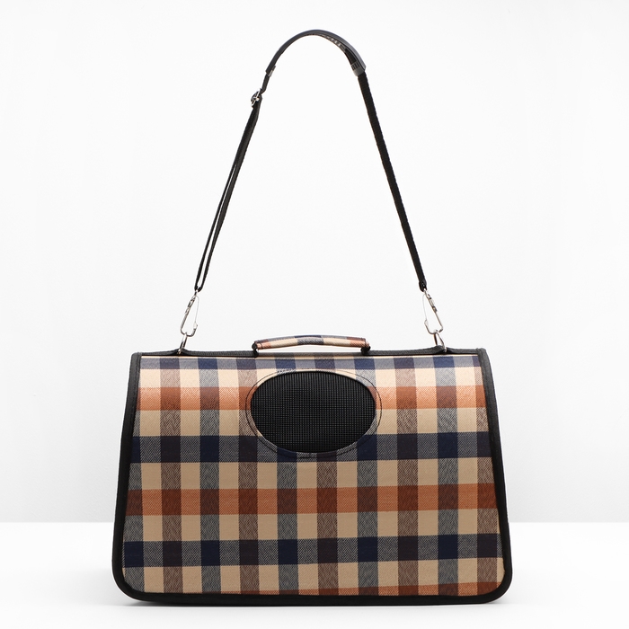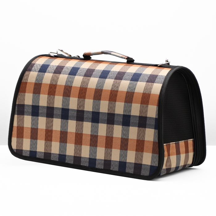 Сумка-переноска каркасная, со шторкой, размер M, 43 х 21 х 26 см, клетчатая