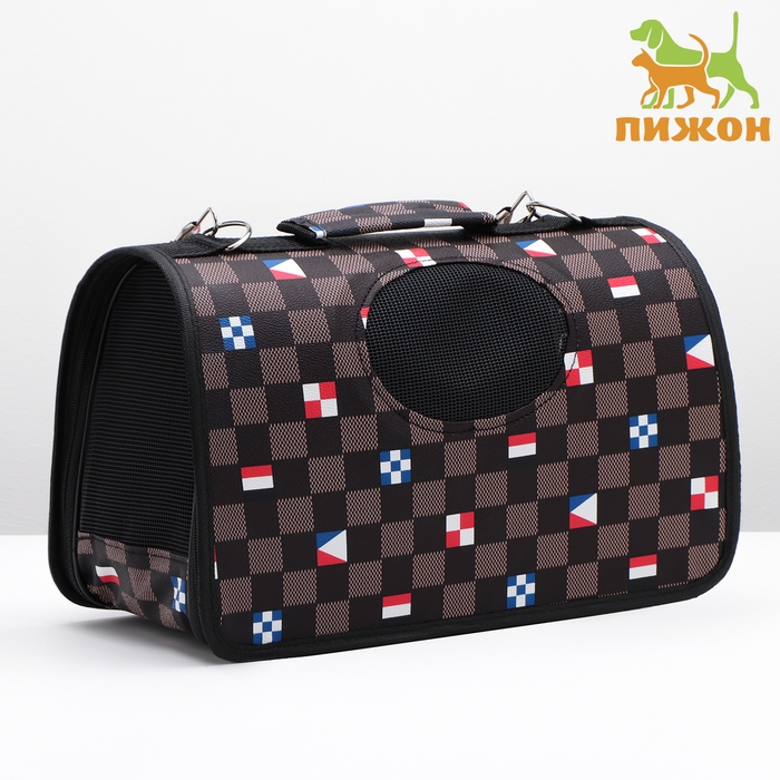Сумка - переноска для животных "Лапки Happy", чёрная, размер М, 40 х 21 х 27 см