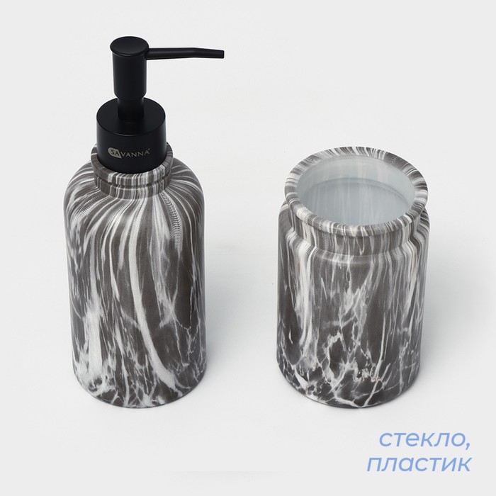 Набор аксессуаров для ванной комнаты SAVANNA, 2 предмета: дозатор, стакан, цвет серый