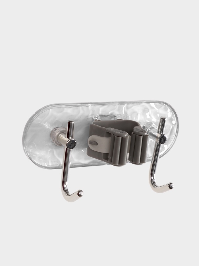 Держатель для швабр настенный самоклеящийся, прозрачная основа, 16х6х6 см