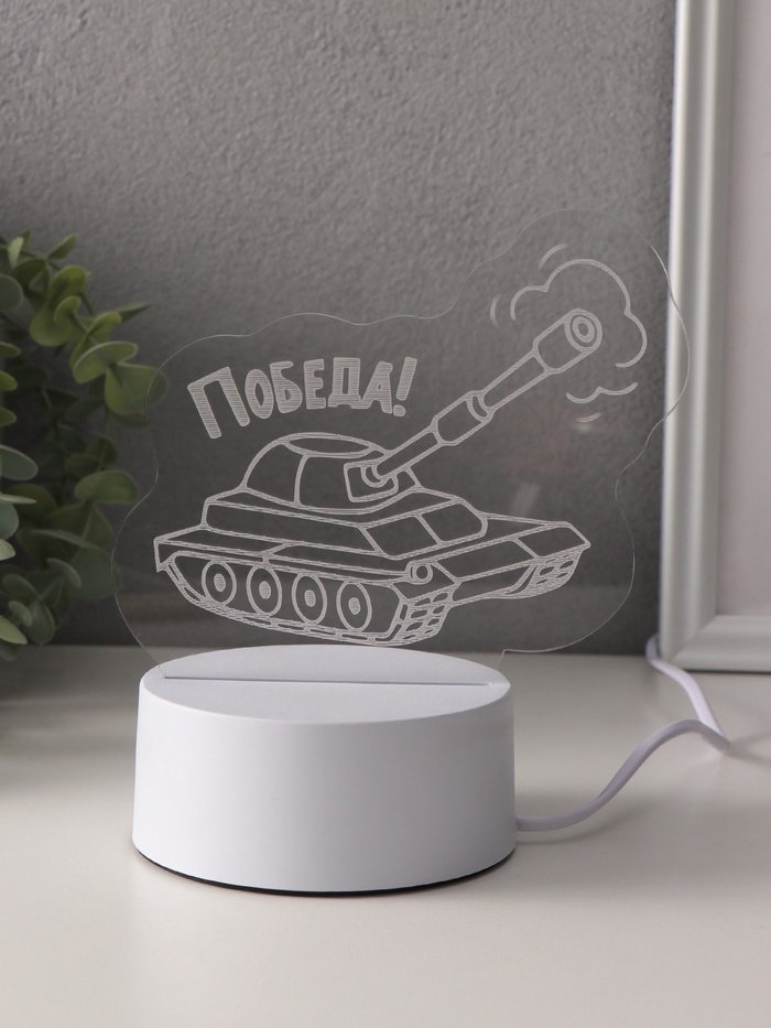 Светильник "Танк. Победа!" LED RGB от сети RISALUX 9,5х15х13,8 см