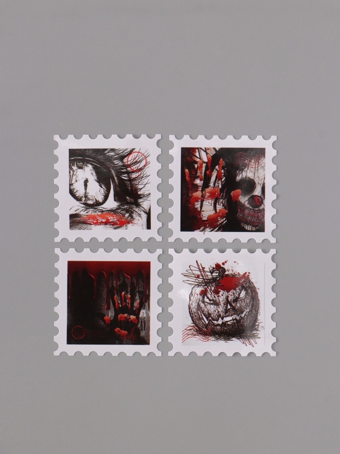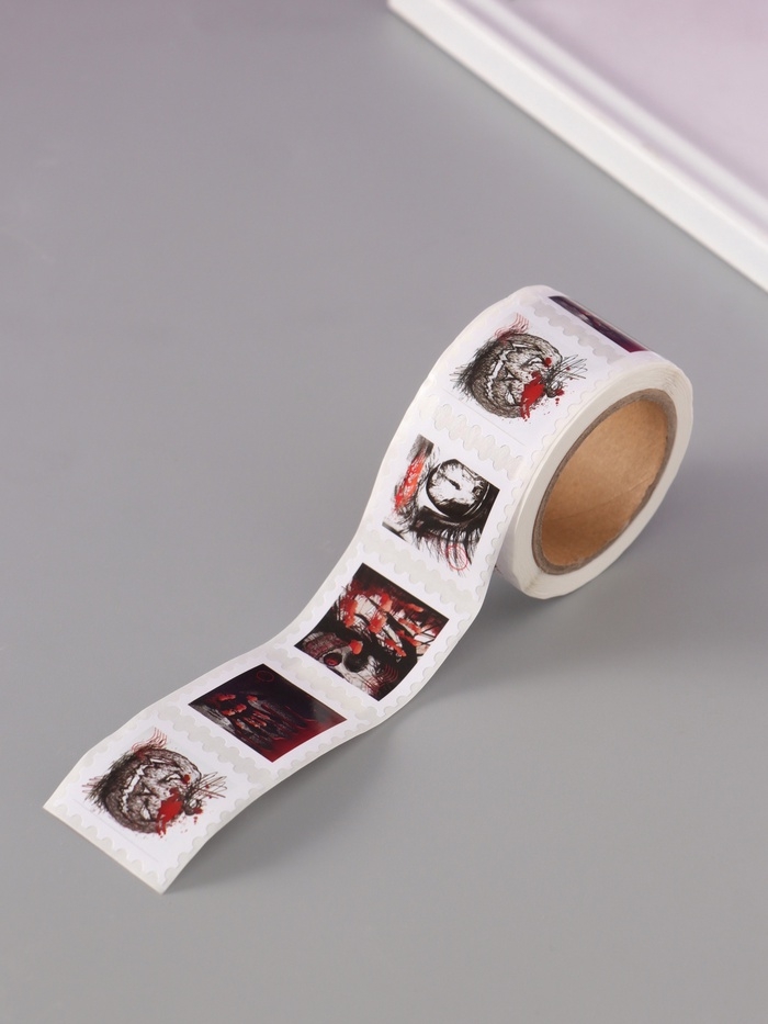 Наклейка бумага "Марки. Хэллоуин" 3х3 см 200 шт в рулоне