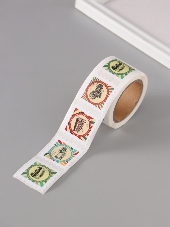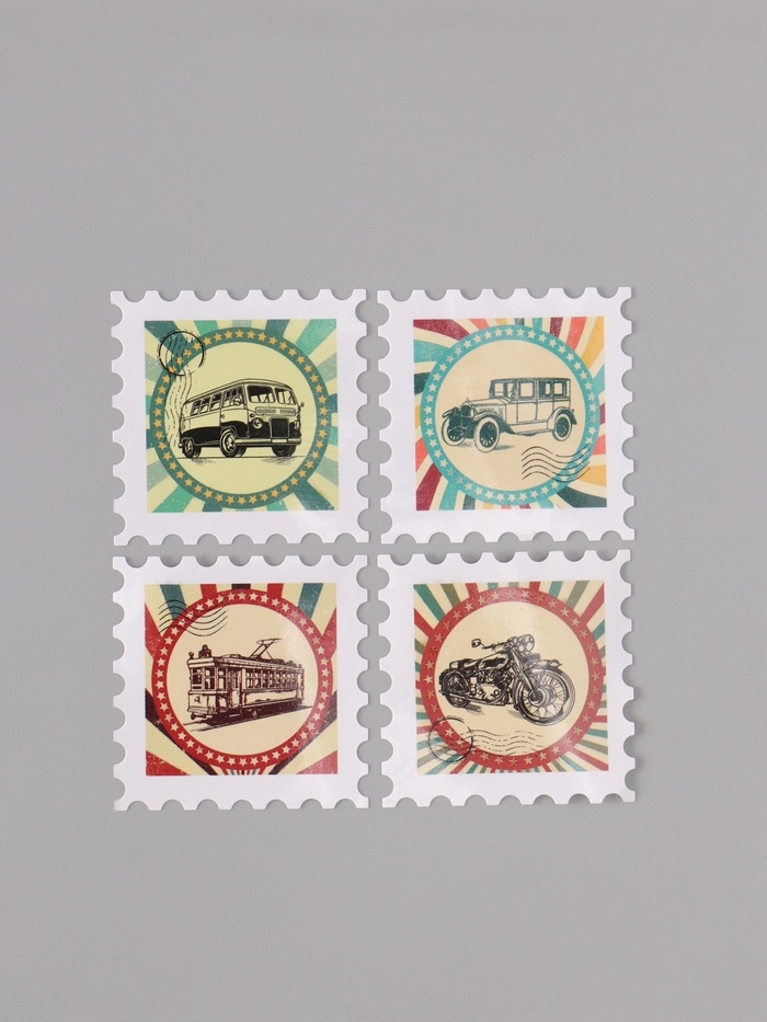 Наклейка бумага "Марки. Ретро транспорт" 3х3 см 200 шт в рулоне