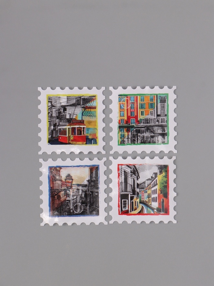 Наклейка бумага "Марки. Города" 3х3 см 200 шт в рулоне
