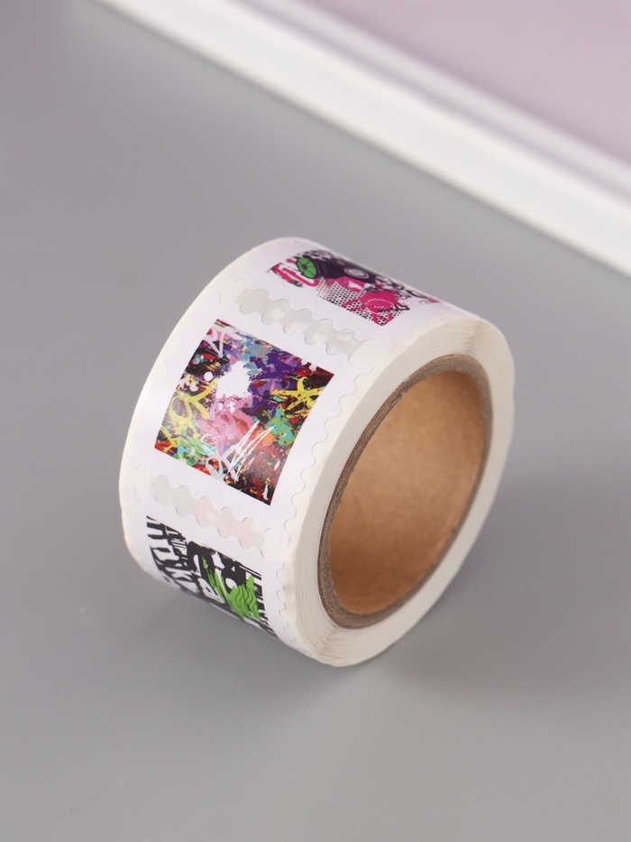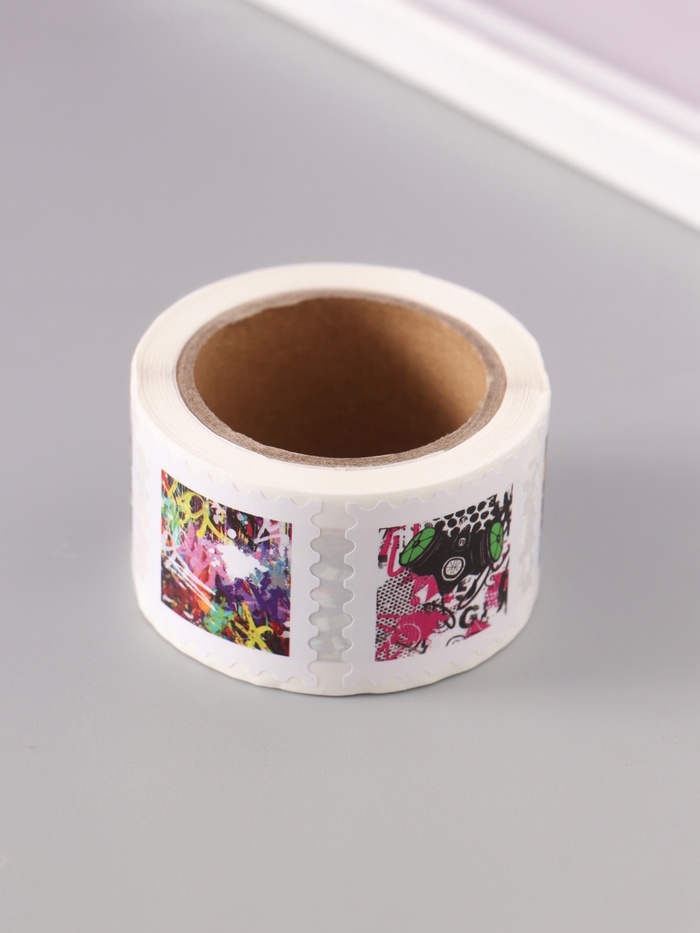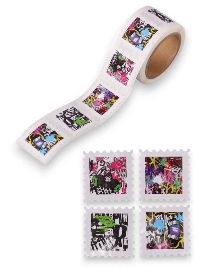 Наклейка бумага "Марки. Граффити" 3х3 см 200 шт в рулоне