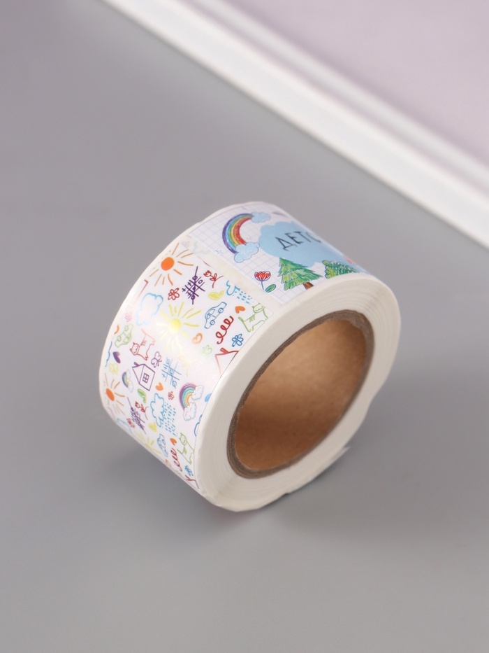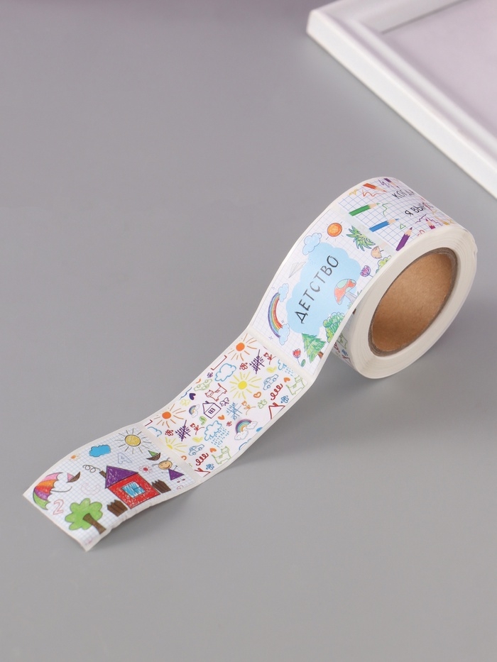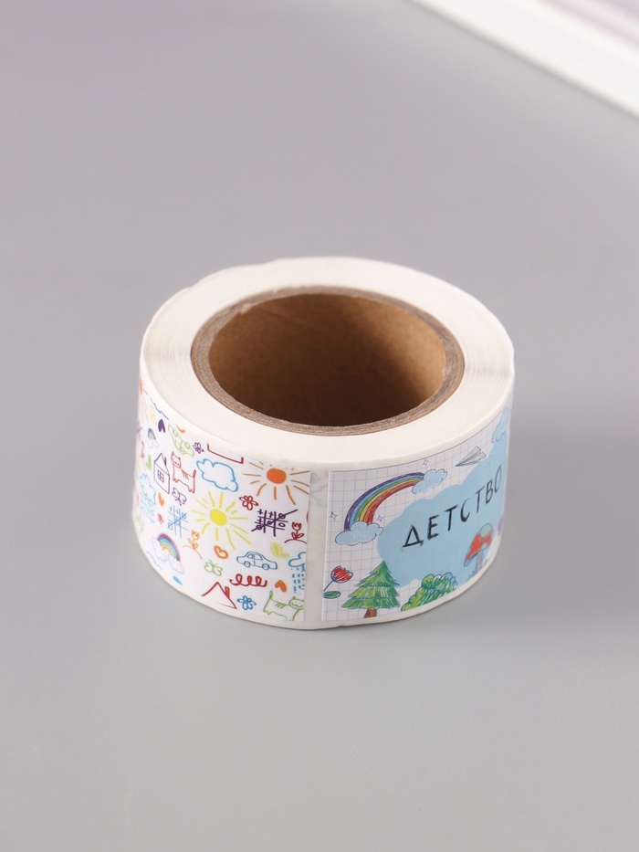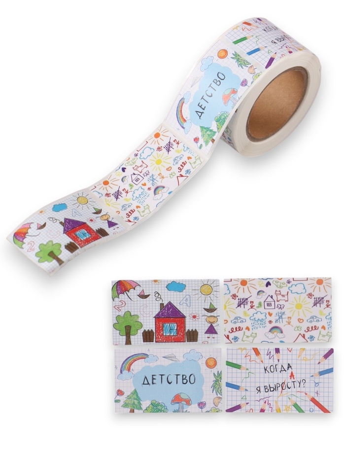 Наклейка бумага "Детские рисунки" 3х5 см 200 шт в рулоне