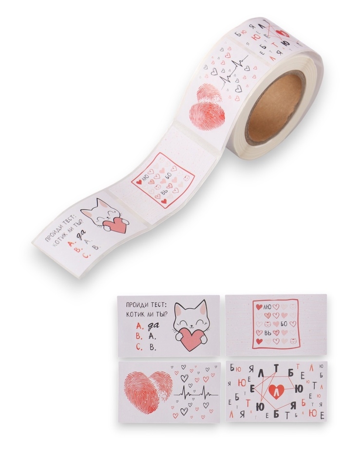 Наклейка бумага "Признание в любви" 3х5 см 200 шт в рулоне
