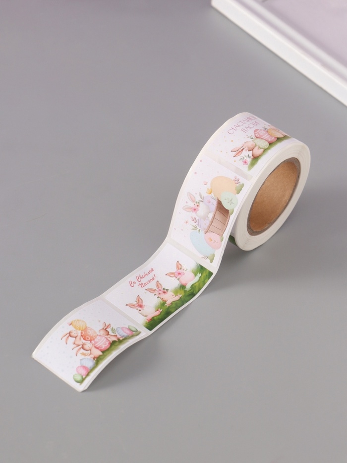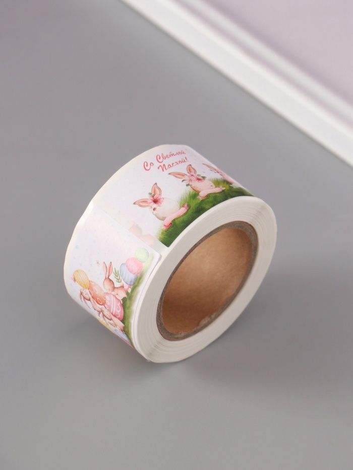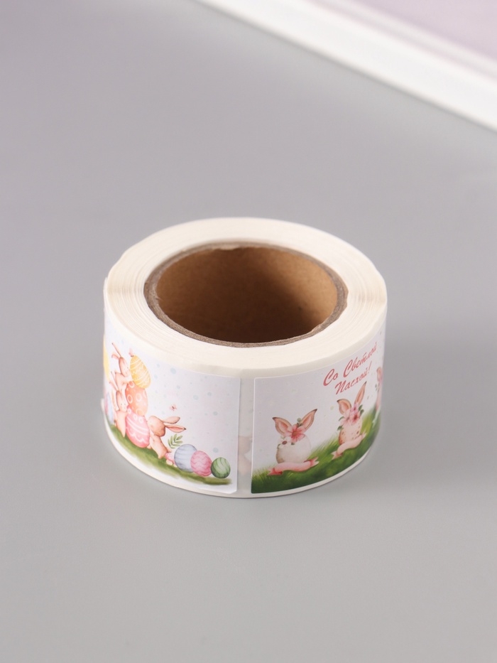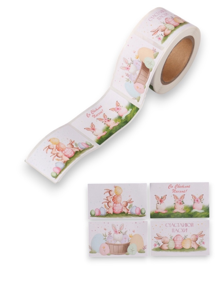 Наклейка бумага "Пасхальные кролики" 3х5 см 200 шт в рулоне