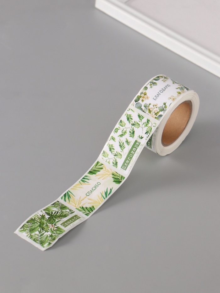 Наклейка бумага "Веточки и листья" 3х5 см 200 шт в рулоне