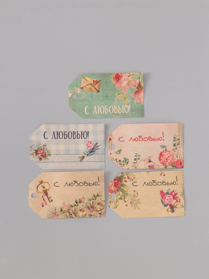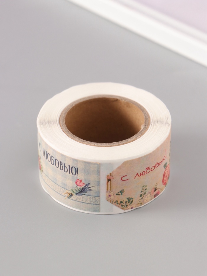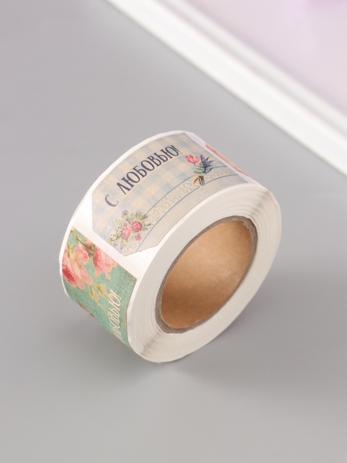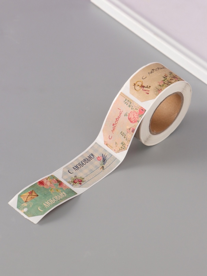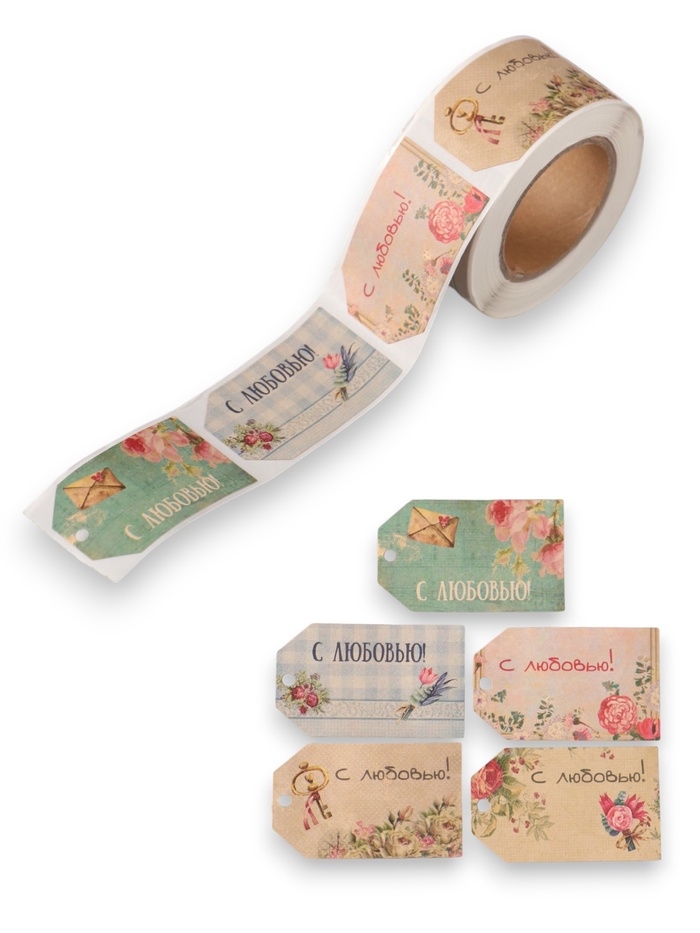 Наклейка бумага крафт "Бирки. Цветы. Винтаж" 3х5 см 200 шт в рулоне