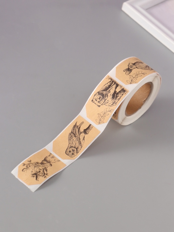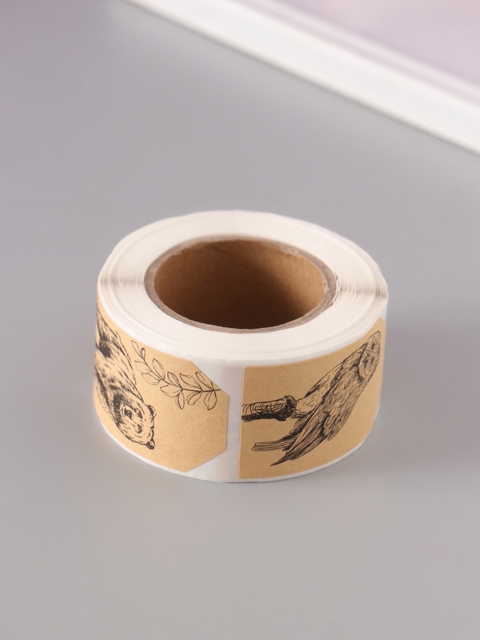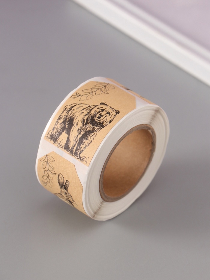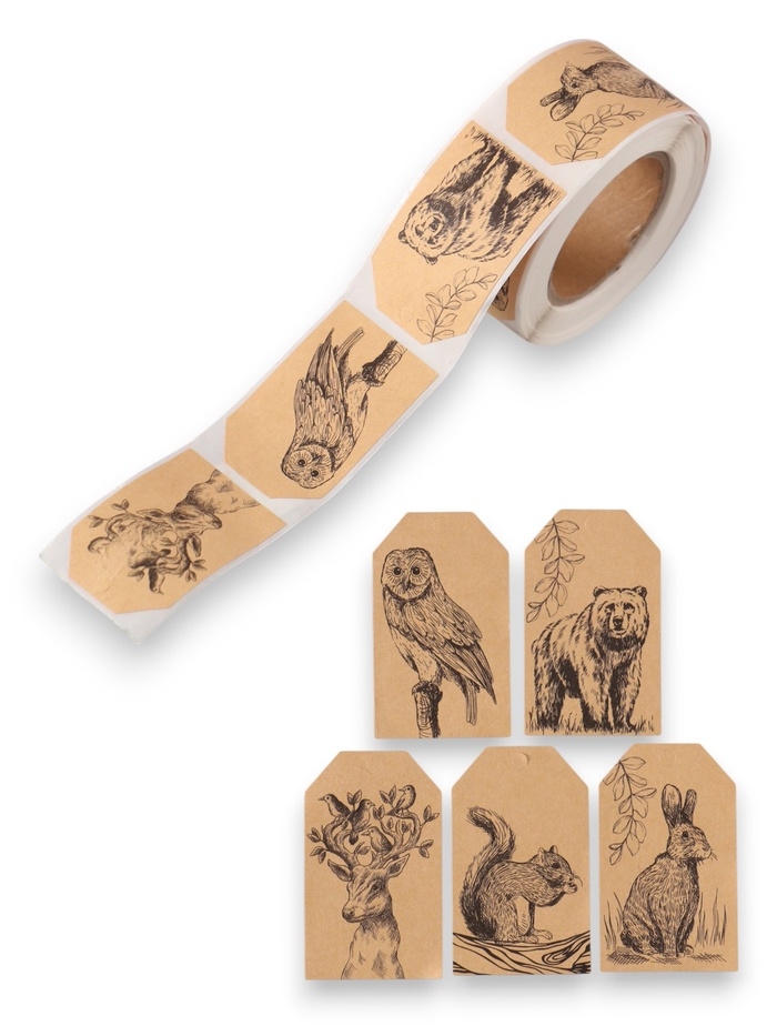 Наклейка бумага крафт "Бирки. Лесные животные" 3х5 см 200 шт в рулоне