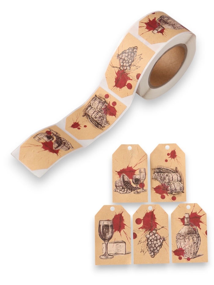 Наклейка бумага крафт "Бирки. Виноградник" 3х5 см 200 шт в рулоне