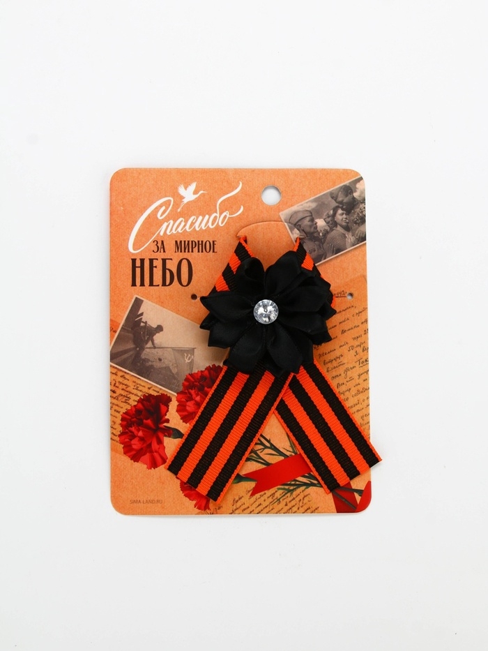 Лента с цветком георгиевская лента "Спасибо за мирное небо", 10,5 х 14 см