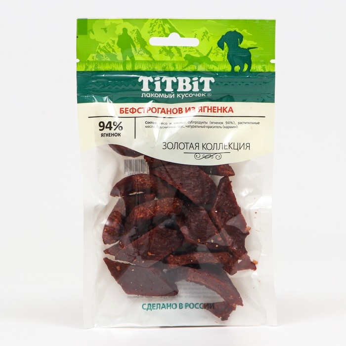 Лакомство для собак Titbit Бефстроганов из ягненка "Золотая коллекция", 75 г