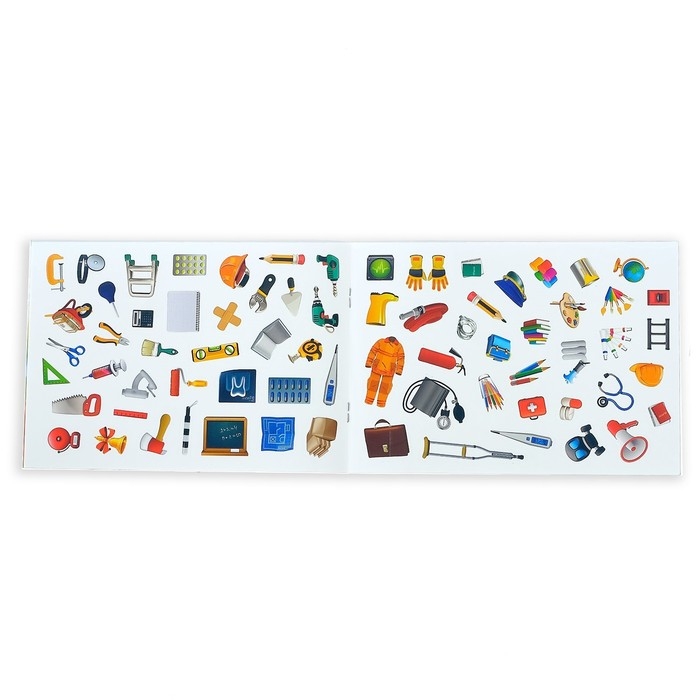 С набором наклеек познавать окружающий мир ребёнку будет легко и интересно. Малыш познакомится с разными профессиями и узнает, какие инструменты используют специалисты своего дела.