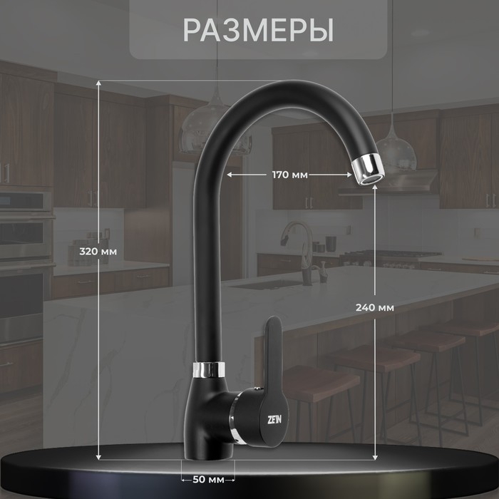 Смеситель для кухни ZEIN Z2630, однорычажный, картридж керамика 40 мм, черный