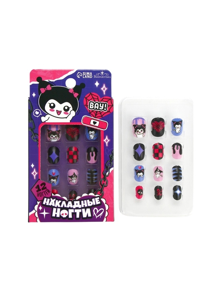 Детские накладные ногти "Забавная кошечка" , 12 шт