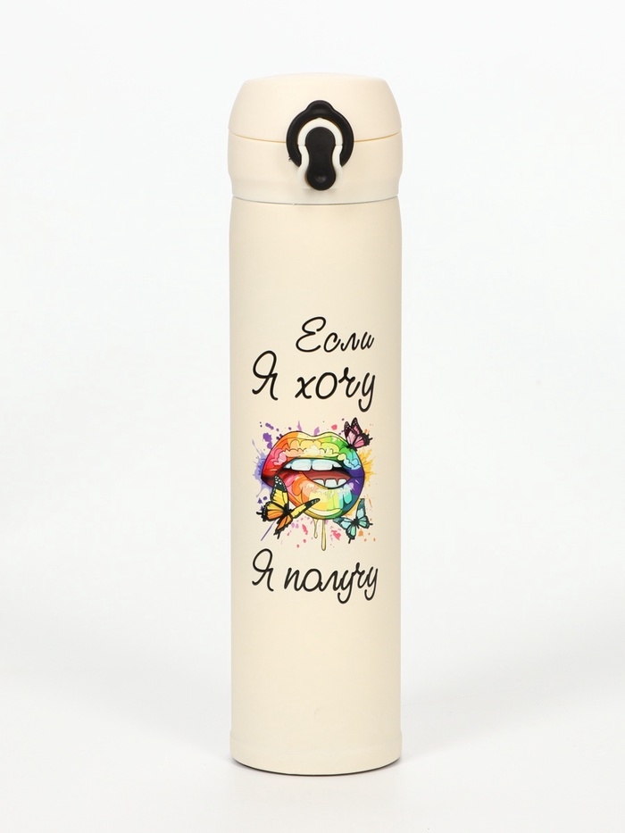 Термос, серия: Топ, "Мастер К. Если я хочу, я получу", 500 мл, бежевый
