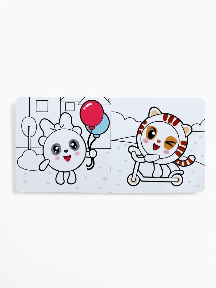Многоразовая раскраска "Весёлый день", 12 стр., 16х16 см, Малышарики