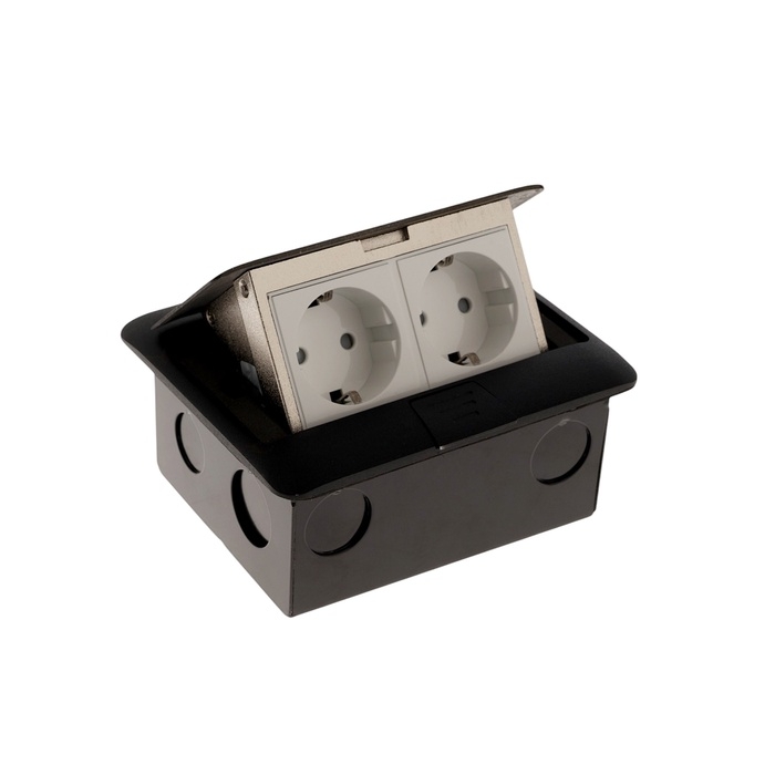 Розетка выдвижная, 16А, двухместная, цвет черный