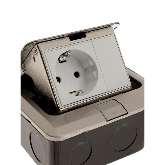 Розетка выдвижная, 16А, одноместная, цвет серебристый