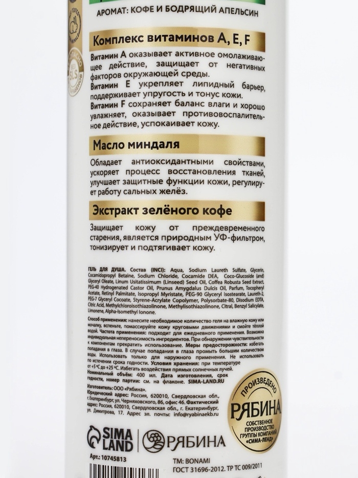 Крем-гель для душа "Кофе и апельсин", 400 мл