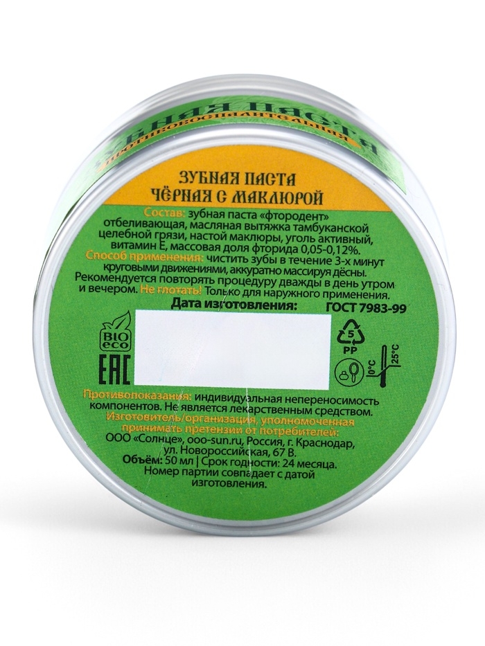 Паста зубная черная с Маклюрой, "Святая рука", 50 мл