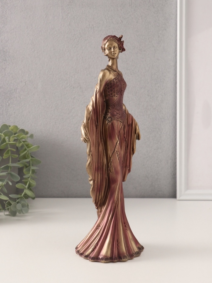 Сувенир полистоун "Девушка в платье 20-30-х годов" бордово-фиолетовый 10х9,5х29,5 см